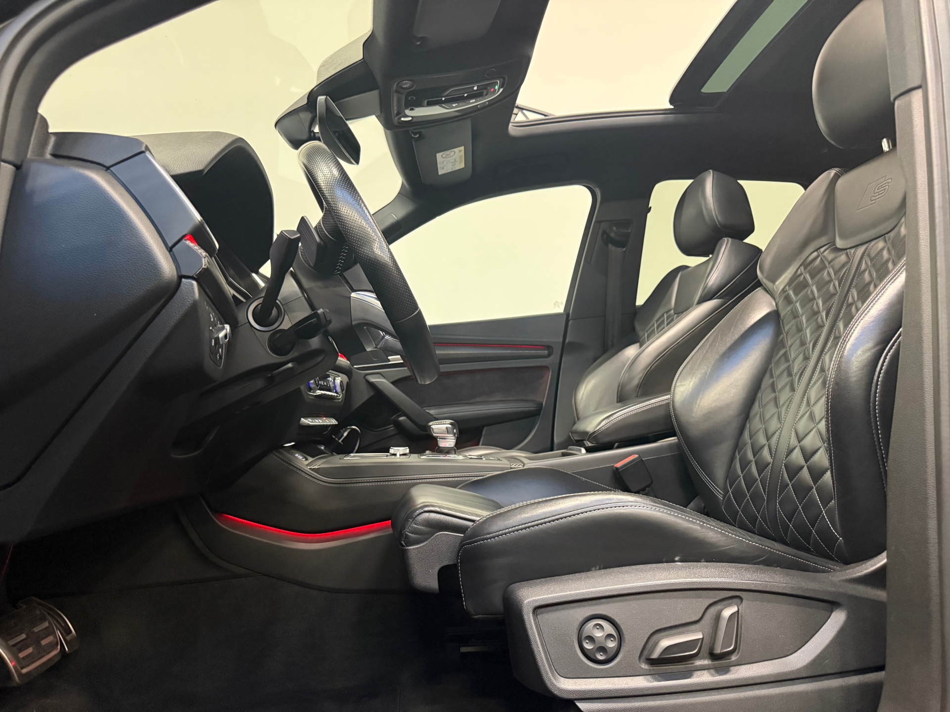 Bij het ontwerpen van de Audi Q5 stonden uw comfort en uw veiligheid centraal. Voor de echte liefhebber is de S-Line styling natuurlijk een dikke plus. De uitstekende prestaties van deze auto komen van de viercilinder motor en de automatische transmissie. We nemen u in gedachten even mee. Stop uw bagage moeiteloos achterin dankzij de elektrisch bediende achterklep, neem plaats achter het stuur en zie meteen het luxe lederen interieur. Even het elektrisch bediende glazen panorama dak open en rijden maar! Hoe koud het buiten ook is, de stoelverwarming geeft u meteen een behaaglijk gevoel. Passend bij een auto in het hogere segment is de luchtvering, en dat is te merken aan de gelijkmatige wegligging. Perfect zicht bij nacht en slecht weer? Dat leveren de koplampen met matrix LED-verlichting. Ook 20 inch lichtmetalen velgen, sportonderstel, warmtewerend glas, dakspoiler, in delen neerklapbare achterbank en LED-achterlichten horen tot de voorzieningen op deze auto.