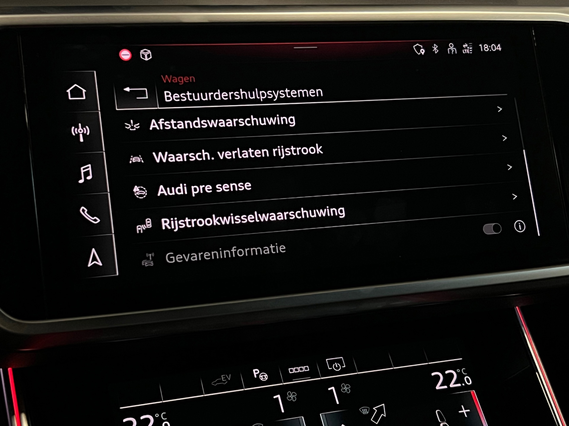 De standkachel is een ideale optie voor de koude maanden. U stapt altijd in een voorverwarmde auto en hoeft nooit meer ruiten te krabben. Rij- en route-info wordt perfect in beeld gebracht door het digitale dashboard. Bij het inparkeren laat de parkeerhulp met achteruitrijcamera precies zien hoeveel meter... decimeter... centimeter ruimte er nog is! Met adaptive cruise control houdt deze auto automatisch afstand tot uw voorligger. Hoe is het met de banden, de accu en andere onderdelen? Connected Services maakt het inzichtelijk, 24/7 via de app. De uitrusting van deze Audi is met premium audiosysteem, navigatiesysteem, kruisend verkeer detectie, electronic climate control, sportstuur met schakelpaddels en draadloos opladen behoorlijk compleet.