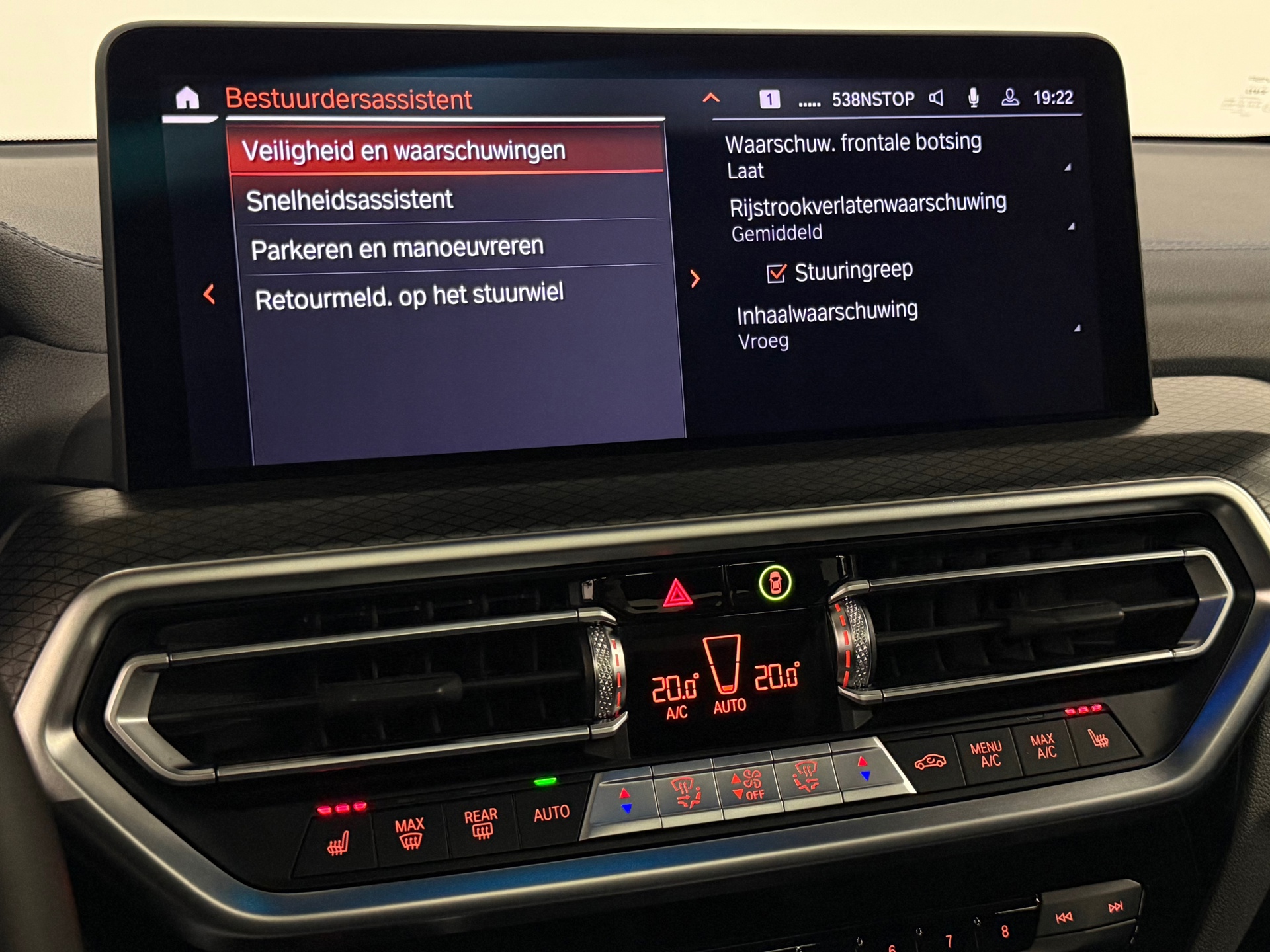 Zoals u mag verwachten van deze BMW X3 is hij uitgerust met een reeks aan actieve veiligheidssystemen. Blik permanent op de weg en toch belangrijke functies in beeld? De head-up display projecteert rij-informatie op de voorruit! Verkeersbord-detectie herkent verkeersborden en toont deze op het instrumentarium van de auto. Met het Lane-keeping systeem komt u nooit per ongeluk buiten de rijstrook. De auto is ook uitgerust met dodehoekdetectie, accident avoidance system, forward collision warning system, hill hold functie, brake assist en vermoeidheidsherkenning.