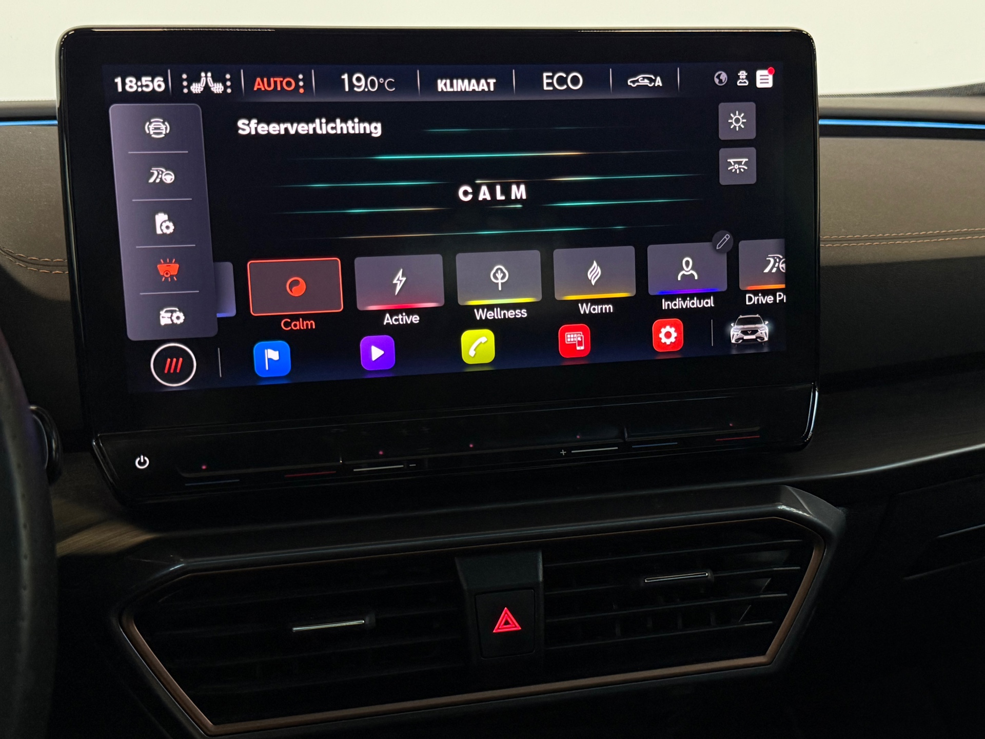 Het rijden met deze Cupra wordt nog meer ontspannen dankzij de innovatieve technieken die onderweg over uw veiligheid waken. Bij de veiligheidssystemen van deze Cupra hoort ook de verkeersbord-detectie. Die leest tijdens het rijden als het ware met u mee en attendeert u op de significante verkeersborden langs en boven de weg. Indien u onbedoeld de rijstrook lijkt te verlaten, reageert het Lane-keeping systeem meteen en corrigeert. Voor meer veiligheid detecteert deze auto het risico van een aanrijding tijdig via de forward collision warning. De veiligheid van deze auto wordt verder verhoogd door dodehoekdetectie, accident avoidance system, hill hold functie, vermoeidheidsherkenning en bandenspanningcontrolesysteem.